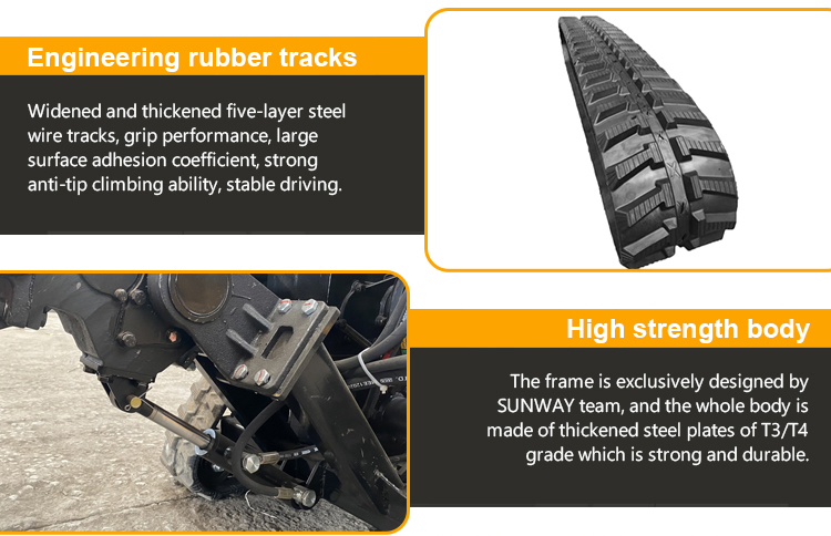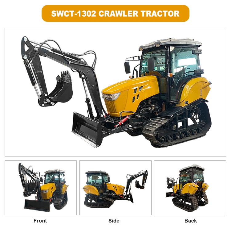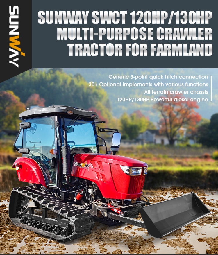 SWCT 120HP/130HP Series multi-function rubber track crawler tractor is the new generation upgraded agricultural garden farm tractor by SUNWAY technical team after technical improvement, which further strengthens the strength of the tractor body and chassis, ensures the continuous and stable performance output, and optimizes the fuel-saving performance.
